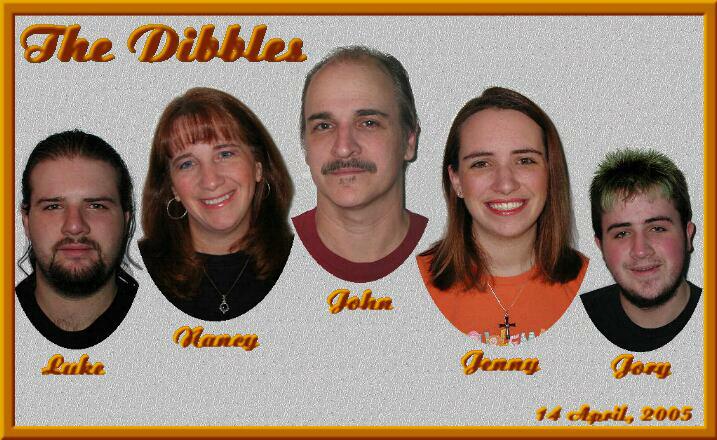 Welcome to Our Web site!The Western branch of the Dibble Clan consists of: My Spousal unit, Nancy, the young 'uns; Luke, Jenny, Jory, and myself. Luke, Sondra, Lainey and Xander live in Aurora, Colorado, and Jory lives in the Minneapolis area. Nancy, Jenny and I live in Missoula, Montana Check out our individual pages if you're interested.